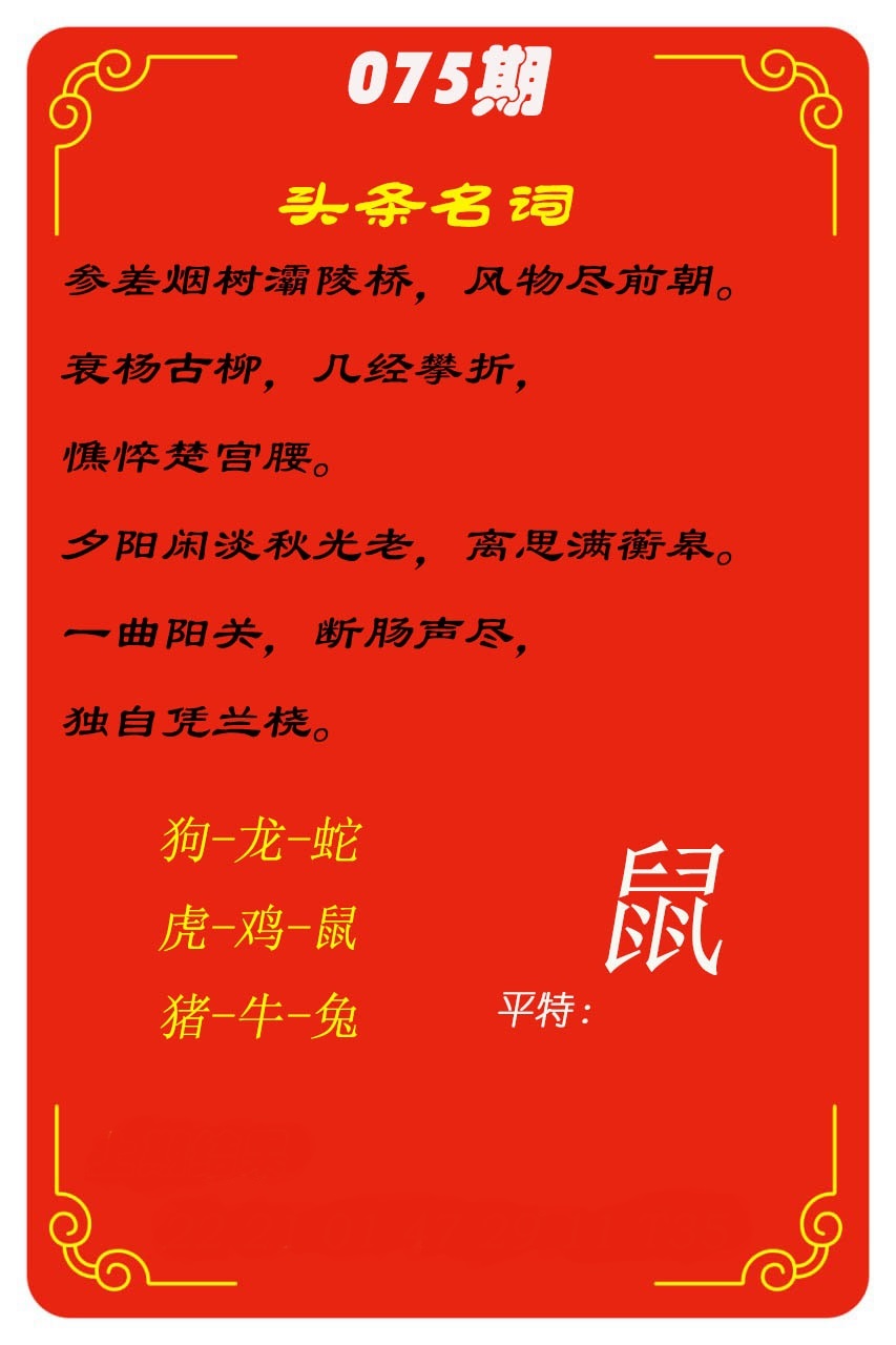 | 075期:七肖 | 猪蛇羊狗马龙猴 | ?00中 |