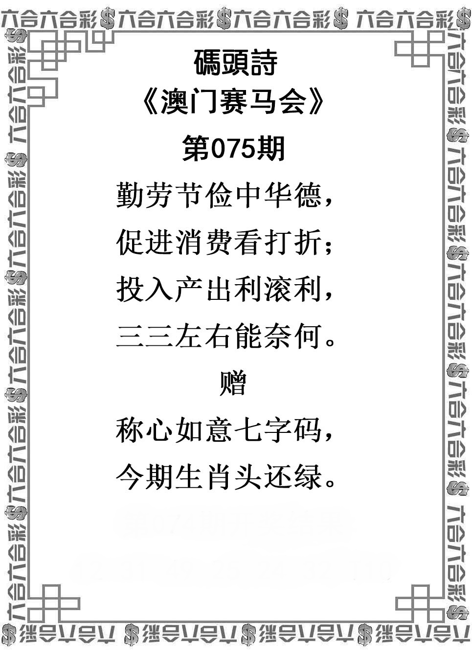 | 075期稳中①肖:兔 |